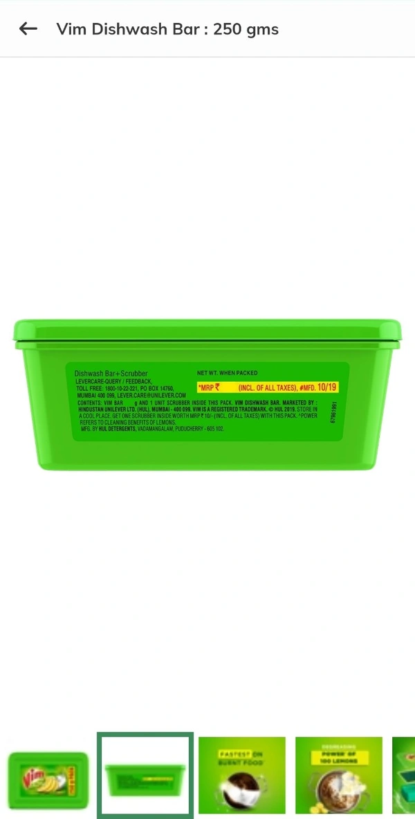 Vim Dishwash Bar 250Gms